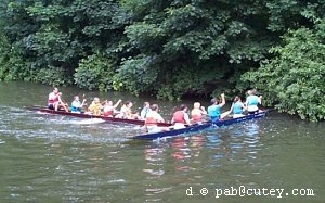 Regatta Two teams collide in a dongola race. Having no rudder, they are difficult to steer and a number of teams took an early bath... |