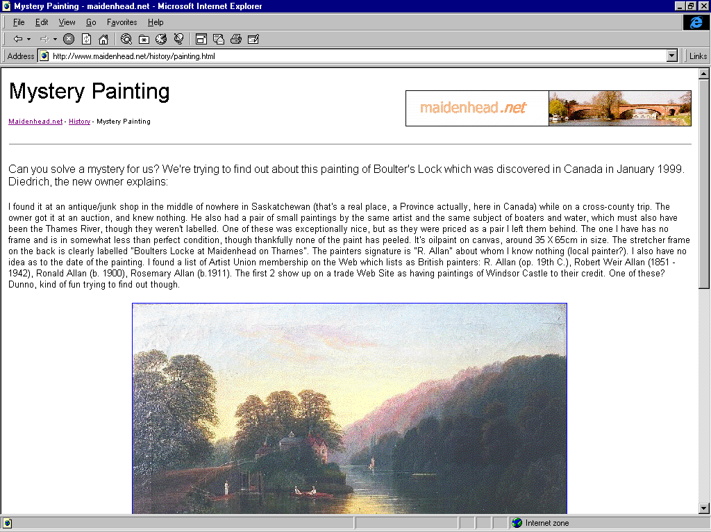 August 1999 - Local Trees and the arts - An image stored on maidenhead.net is used in an art exhibition